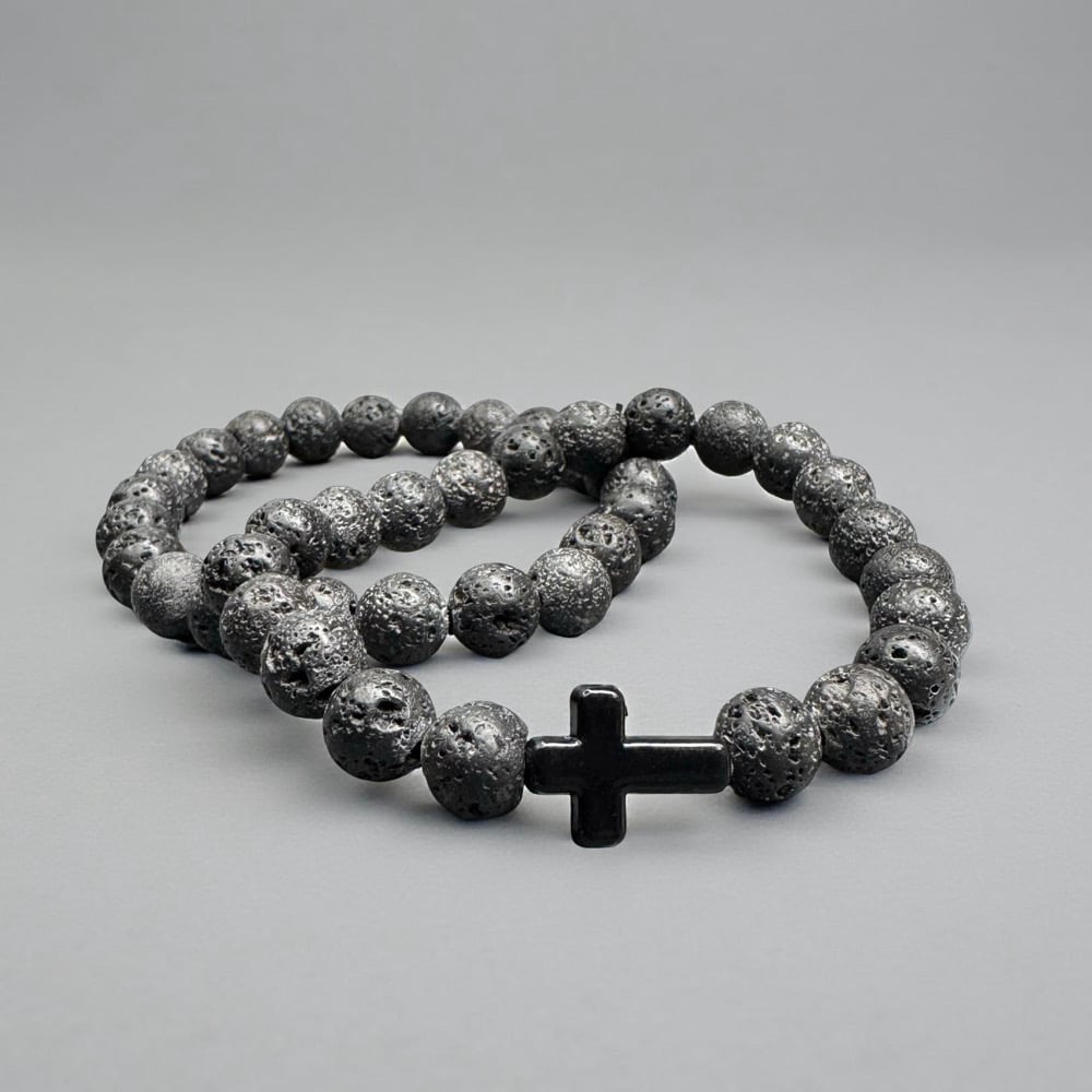 Wordsmith Collection -Black Lava Beads, Black Cross Bracelets